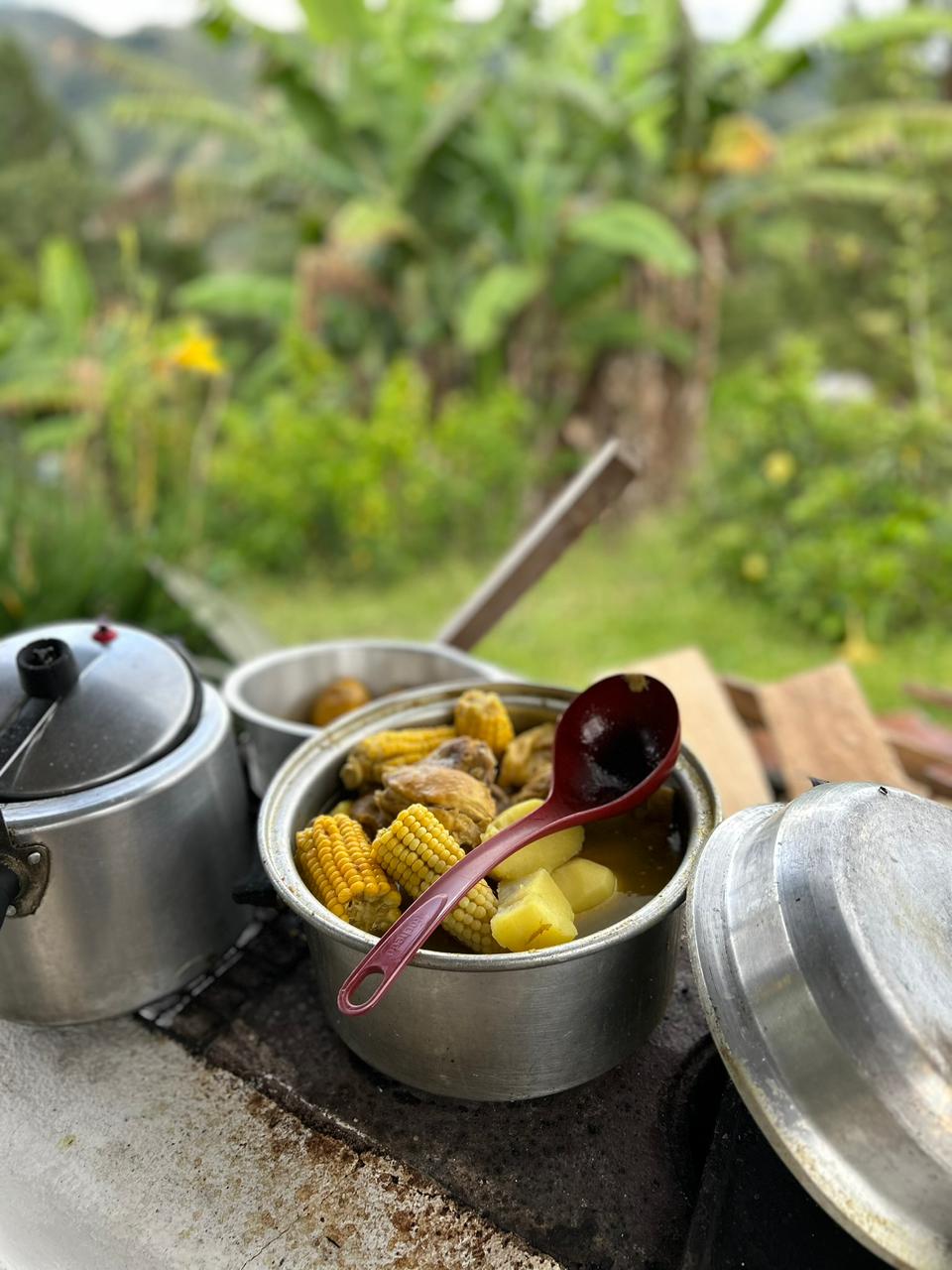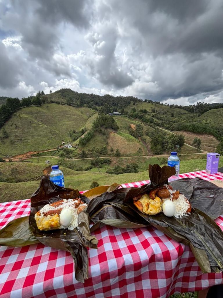 Luego descendemos por el otro lado de la montaña hasta llegar a la finca de Norita, en la vereda La Luz, donde nos espera uno de los mejores momentos de la ruta: un delicioso almuerzo.