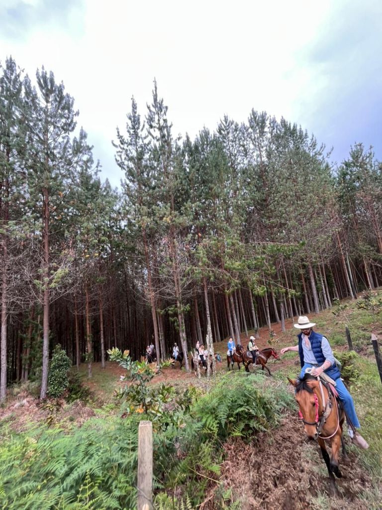 Nuestra ruta ideal para quienes desean más tiempo a caballo, sin exagerar iniciamos entre riachuelos y caminos de herradura dentro de la reserva, ascendiendo poco a poco hasta atravesar pequeñas fincas campesinas y adentrarnos en el Bosque encantado, una pinera llena de aire fresco y tranquilidad